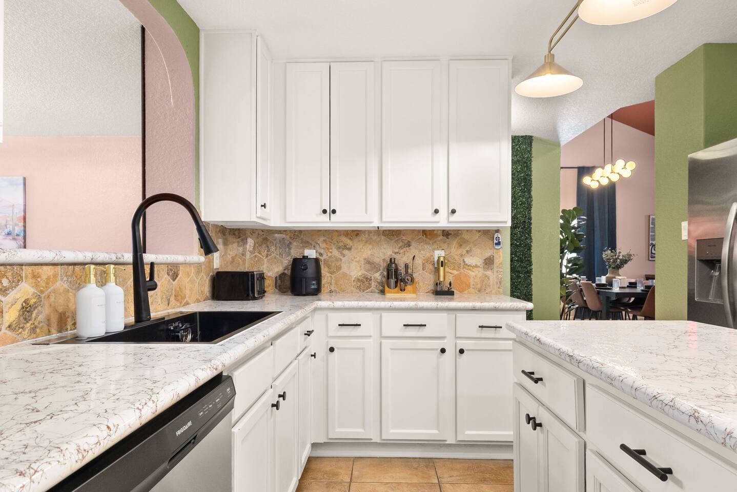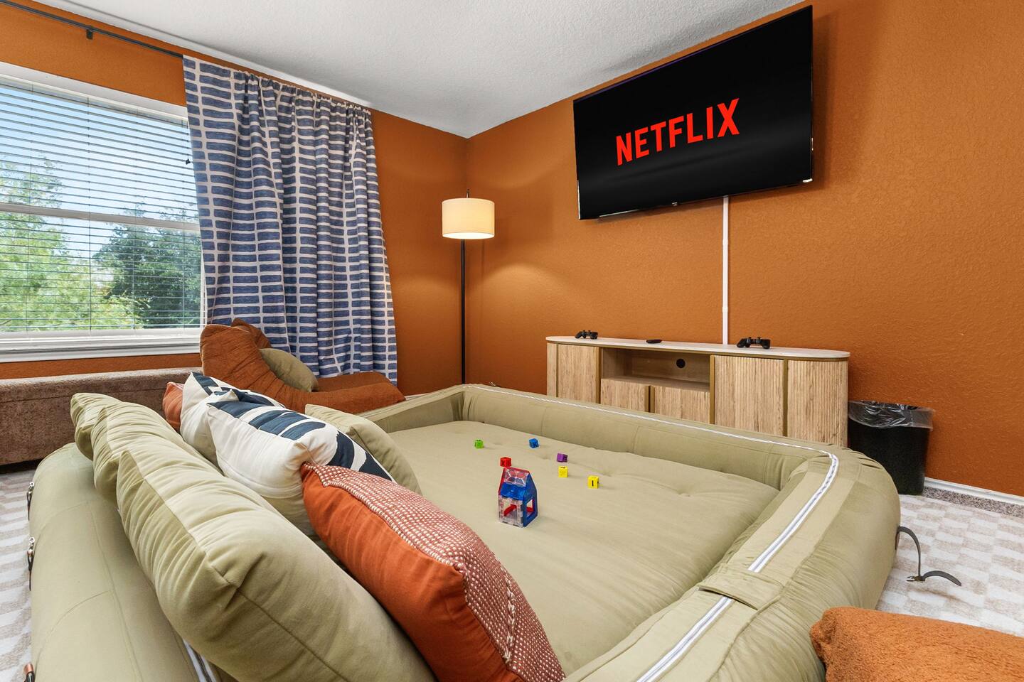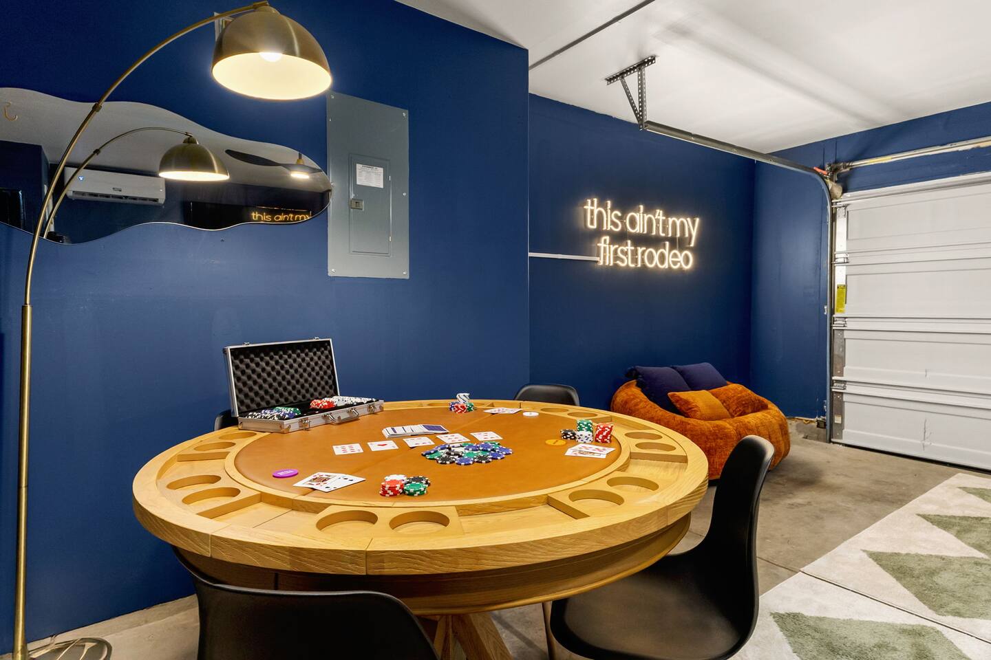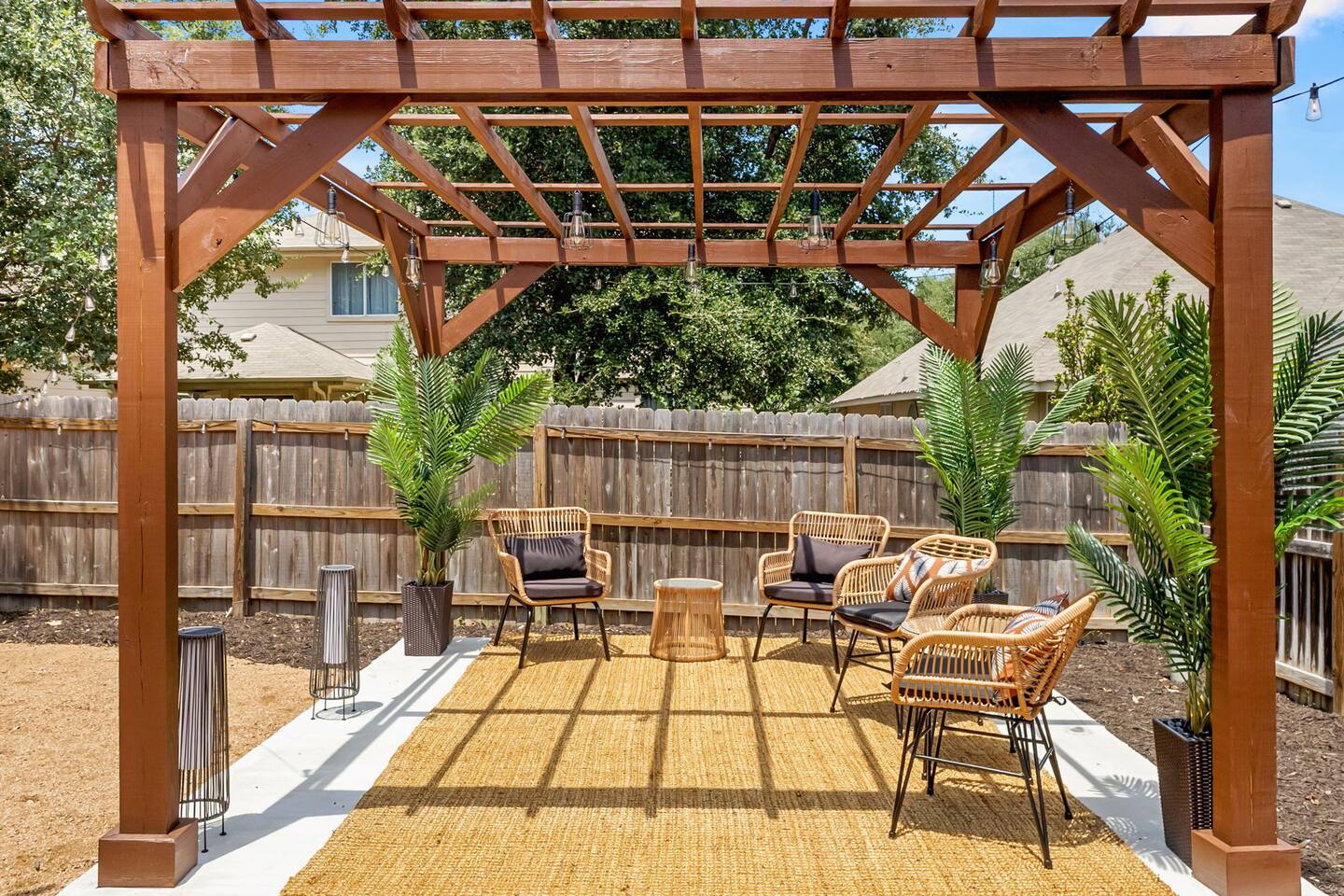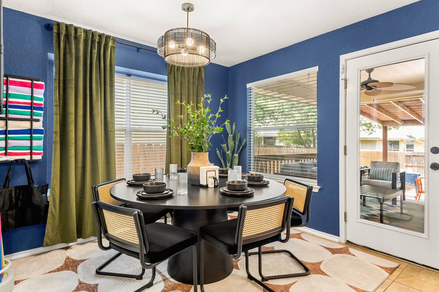 🌞 Welcome to Amber Sol Retreat Your sun-kissed escape in San Antonio, TX! Inspired by warm terracotta vibes, this vibrant 4-bedroom, 3.5-bath getaway is tailor-made for families, large groups, military visitors, and BMT graduation guests. With space for up to 17 guests, Amber Sol blends comfort, entertainment, and relaxation into one unforgettable stay. 🛋️ Lounge & Laugh Indoors Kick back in the cozy living room with a sleeper sofa and Smart TV, or head upstairs to the game loft a playful paradise featuring: • ⚡ Air hockey table • 🎮 Retro game stick with 20,000+ games • 🧸 Toy nook for the littles • 🛏️ Convertible couch bed for extra sleep space Then level up in the garage game room, packed with: • 🎱 Pool table • 🥌 Shuffleboard • 🕹️ Arcade cabinet • ♠️ Poker table • 🎯 Dartboard • 📺 65” Smart TV • ❄️ Full-size fridge & mini split A/C to keep things cool 🛌 Sleep Like Royalty – Room for 17 Every bedroom has a Smart TV and plenty of cozy space: • 🛏️ 3 King bedrooms (2 include full-size futons for bonus sleep spots) • 🛏️ 1 Bunk room with 2 full-over-full bunk beds & retro gaming fun • 🛋️ Loft with a quirky sofa-to-bed setup • 💤 Living room sleeper sofa for those movie-night crashes 🍳 Cook, Dine, and Sip in Style You’ll feel right at home in the fully stocked kitchen: • 🍽️ Pots, pans, dishes, utensils! All ready for your crew • ☕ Keurig combo coffee maker (with coffee included!) • 🍴 Indoor dining spaces for everyone to gather, featuring two dining areas, one with seating for 8 and another with seating for 6 • 🌤️ Outdoor dining table (seats 8) + extra turf seating (seats 4) 🌵 Backyard Bliss – Your Private Outdoor Oasis Step outside and let the good times roll: • 🌞 Two covered patios with comfy seating • 🔥 Firepit area with space for 10 to cozy up • 🏕️ Turf yard perfect for lawn games and lounging • 🍹 Pergola lounge for shady hangs • 🔥 Propane & charcoal grills ready for BBQ nights • 🧊 Outdoor ice chest + pool bar stocked with tumblers, coolers, tote bag & water shooters • 🎟️ Stadium chairs and extra coolers available for guests attending BMT graduation days so you can stay comfortable and prepared while cheering on your Airman! ❄️ Stay Cool, Stay Comfortable • 🌬️ Dual A/C zones for personalized temps • 🧺 In-unit washer & dryer (with detergent & dryer sheets!) • 🔐 Easy self-check-in via smart lock • 🚗 Free parking in driveway and street (accommodates 3 vehicles) 🏀 Neighborhood Fun – Just a Short Stroll Away (0.4 mi / 8 min walk!) • 🏊♀️ Community pool – Operating hours and time frame is 9 AM – 9 PM (March [spring break week] –December) • 🏀 Basketball court • 👧 Children’s playgrounds 📍 Explore San Antonio – Nearby Hot Spots 🎢 SeaWorld – 5 mi 🎠 Six Flags Fiesta Texas – 17 mi 🎖️ Lackland AFB – 10 mi 🎖️ Randolph AFB – 38 mi 🌆 Downtown / Riverwalk – 19 mi 🏙️ Fort Sam Houston – 23 mi 🍴 The Pearl – 16 mi 🛍️ Shopping & Dining (5–25 min drive): • Alamo Ranch – 6.1 mi • Dove Creek – 1.5 mi • La Cantera – 16 mi Whether you’re celebrating a special moment, reuniting with family, or cheering on your Airman at BMT graduation, Amber Sol Retreat has everything you need—and then some. ✨ Book your unforgettable San Antonio stay today! PLEASE NOTE: We take guest security and safety seriously, no fraudulent bookings allowed. Guests must complete an easy, online hotel-style check-in with a Rental Agreement.