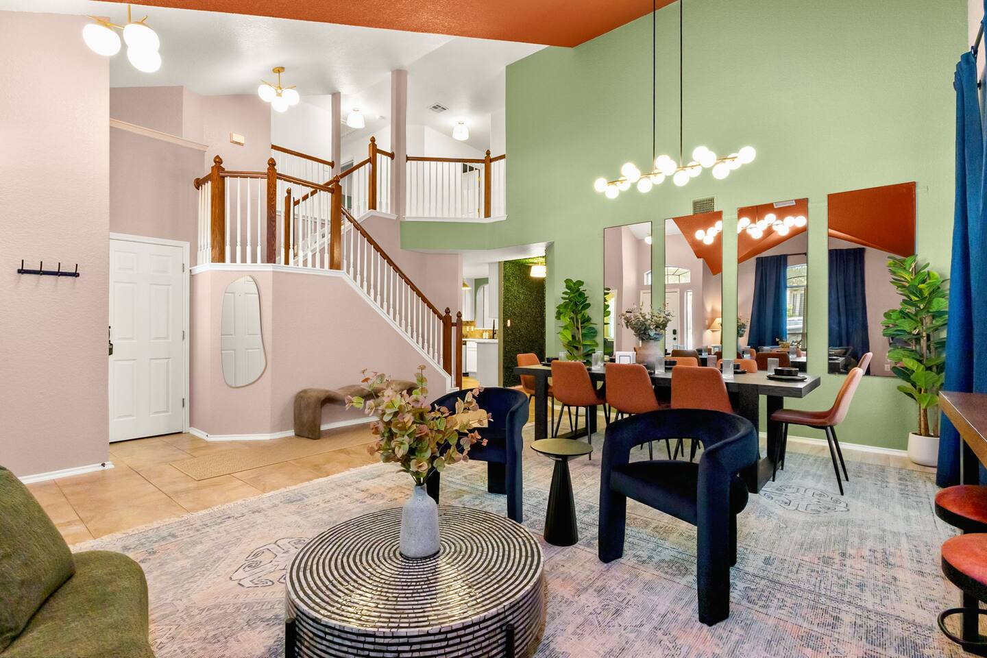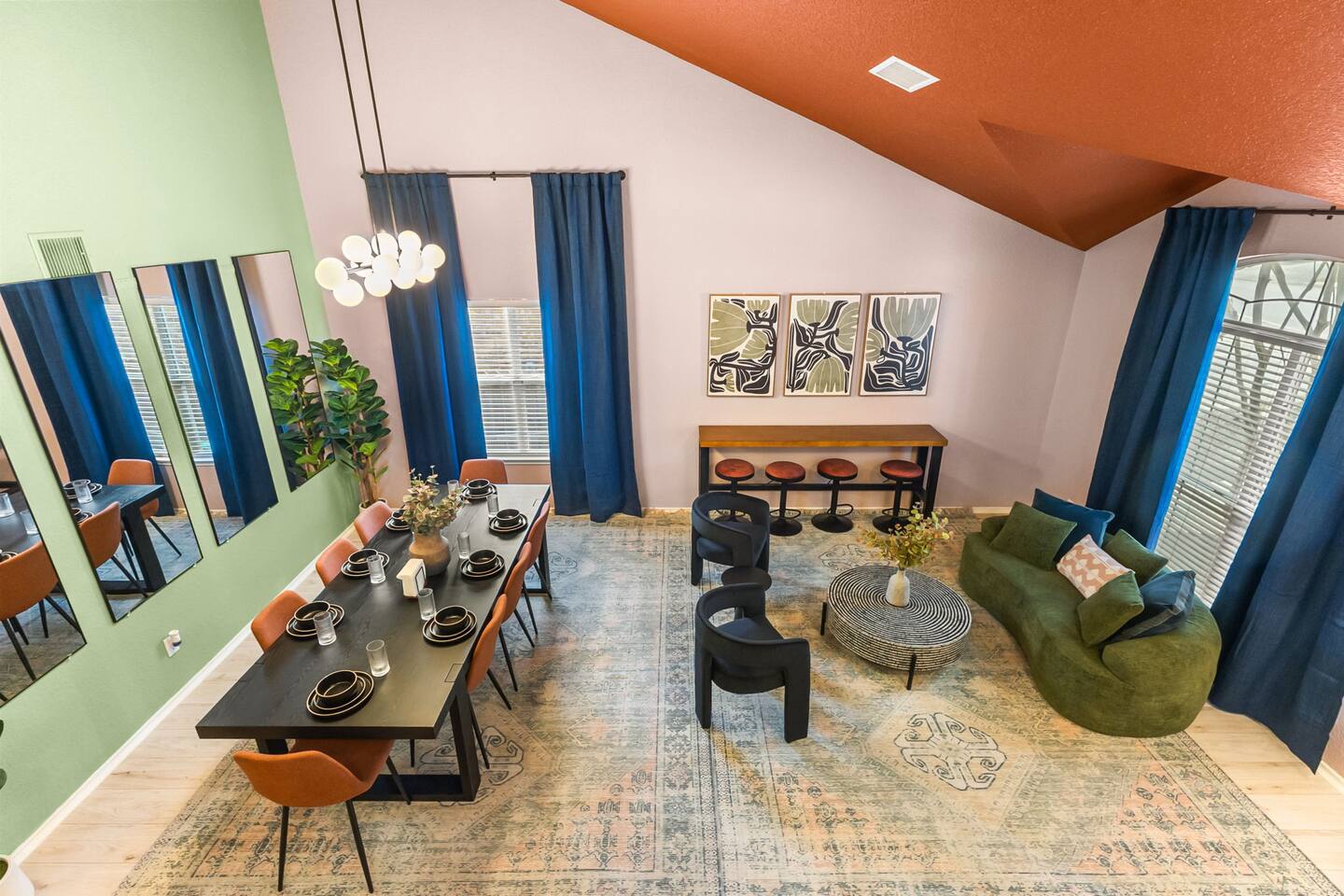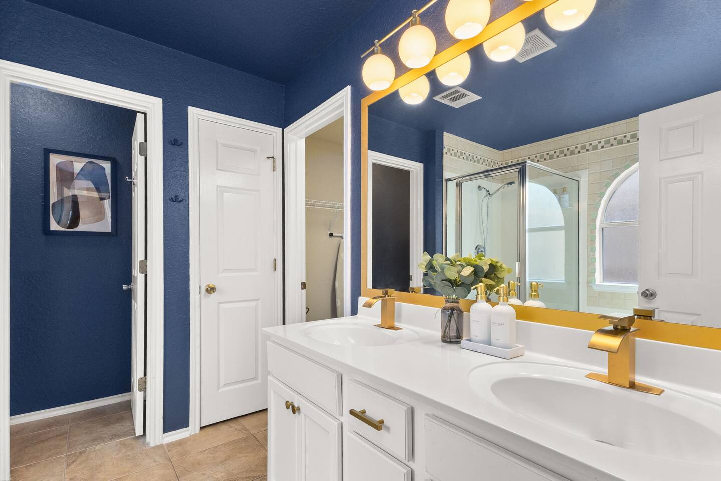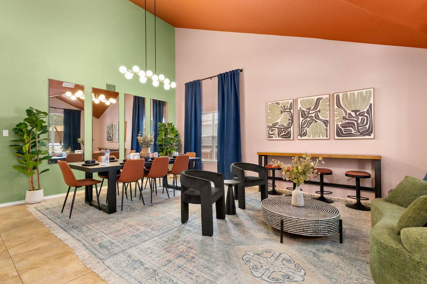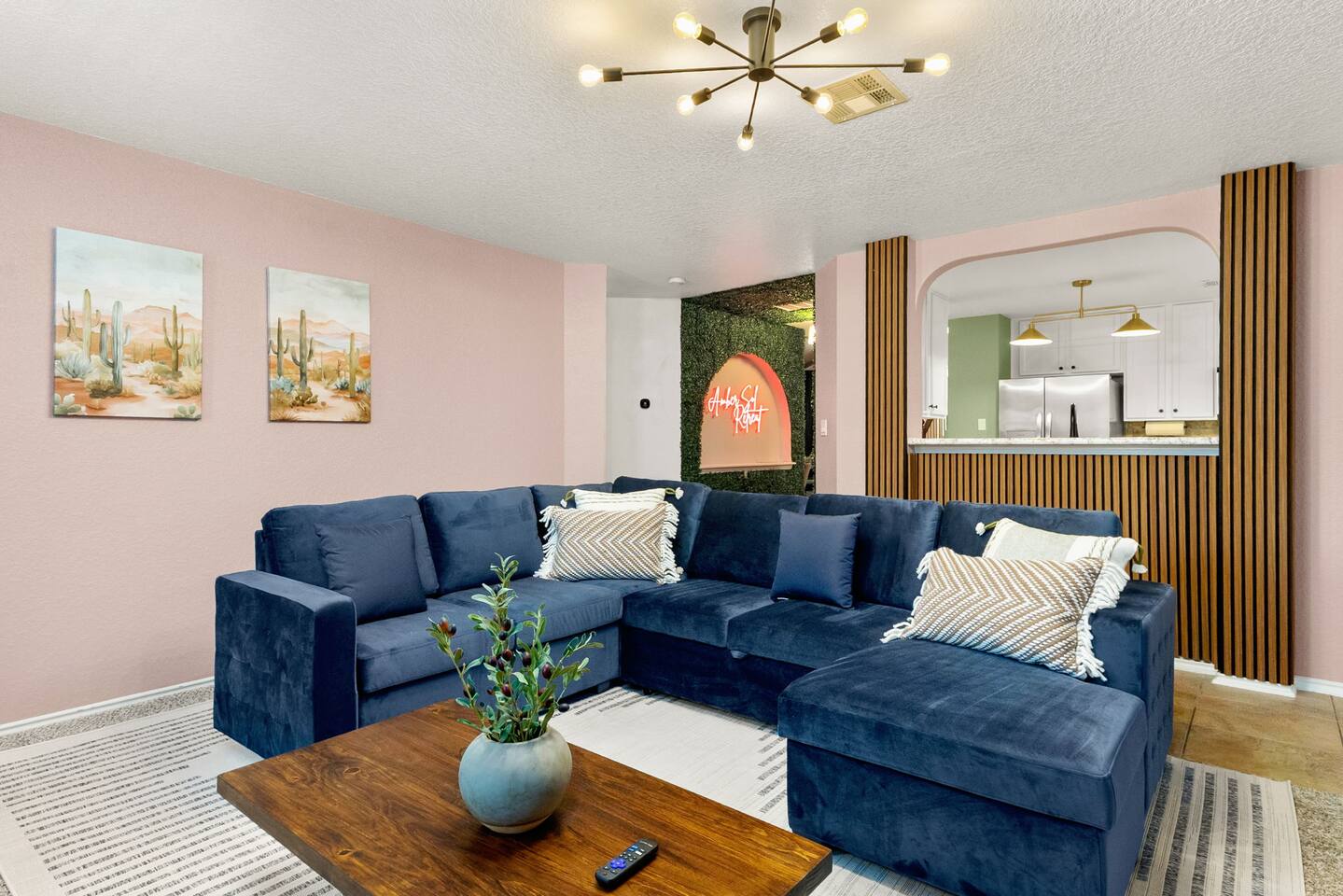 🌞 Welcome to Amber Sol Retreat Your sun-kissed escape in San Antonio, TX! Inspired by warm terracotta vibes, this vibrant 4-bedroom, 3.5-bath getaway is tailor-made for families, large groups, military visitors, and BMT graduation guests. With space for up to 17 guests, Amber Sol blends comfort, entertainment, and relaxation into one unforgettable stay. 🛋️ Lounge & Laugh Indoors Kick back in the cozy living room with a sleeper sofa and Smart TV, or head upstairs to the game loft a playful paradise featuring: • ⚡ Air hockey table • 🎮 Retro game stick with 20,000+ games • 🧸 Toy nook for the littles • 🛏️ Convertible couch bed for extra sleep space Then level up in the garage game room, packed with: • 🎱 Pool table • 🥌 Shuffleboard • 🕹️ Arcade cabinet • ♠️ Poker table • 🎯 Dartboard • 📺 65” Smart TV • ❄️ Full-size fridge & mini split A/C to keep things cool 🛌 Sleep Like Royalty – Room for 17 Every bedroom has a Smart TV and plenty of cozy space: • 🛏️ 3 King bedrooms (2 include full-size futons for bonus sleep spots) • 🛏️ 1 Bunk room with 2 full-over-full bunk beds & retro gaming fun • 🛋️ Loft with a quirky sofa-to-bed setup • 💤 Living room sleeper sofa for those movie-night crashes 🍳 Cook, Dine, and Sip in Style You’ll feel right at home in the fully stocked kitchen: • 🍽️ Pots, pans, dishes, utensils! All ready for your crew • ☕ Keurig combo coffee maker (with coffee included!) • 🍴 Indoor dining spaces for everyone to gather, featuring two dining areas, one with seating for 8 and another with seating for 6 • 🌤️ Outdoor dining table (seats 8) + extra turf seating (seats 4) 🌵 Backyard Bliss – Your Private Outdoor Oasis Step outside and let the good times roll: • 🌞 Two covered patios with comfy seating • 🔥 Firepit area with space for 10 to cozy up • 🏕️ Turf yard perfect for lawn games and lounging • 🍹 Pergola lounge for shady hangs • 🔥 Propane & charcoal grills ready for BBQ nights • 🧊 Outdoor ice chest + pool bar stocked with tumblers, coolers, tote bag & water shooters • 🎟️ Stadium chairs and extra coolers available for guests attending BMT graduation days so you can stay comfortable and prepared while cheering on your Airman! ❄️ Stay Cool, Stay Comfortable • 🌬️ Dual A/C zones for personalized temps • 🧺 In-unit washer & dryer (with detergent & dryer sheets!) • 🔐 Easy self-check-in via smart lock • 🚗 Free parking in driveway and street (accommodates 3 vehicles) 🏀 Neighborhood Fun – Just a Short Stroll Away (0.4 mi / 8 min walk!) • 🏊♀️ Community pool – Operating hours and time frame is 9 AM – 9 PM (March [spring break week] –December) • 🏀 Basketball court • 👧 Children’s playgrounds 📍 Explore San Antonio – Nearby Hot Spots 🎢 SeaWorld – 5 mi 🎠 Six Flags Fiesta Texas – 17 mi 🎖️ Lackland AFB – 10 mi 🎖️ Randolph AFB – 38 mi 🌆 Downtown / Riverwalk – 19 mi 🏙️ Fort Sam Houston – 23 mi 🍴 The Pearl – 16 mi 🛍️ Shopping & Dining (5–25 min drive): • Alamo Ranch – 6.1 mi • Dove Creek – 1.5 mi • La Cantera – 16 mi Whether you’re celebrating a special moment, reuniting with family, or cheering on your Airman at BMT graduation, Amber Sol Retreat has everything you need—and then some. ✨ Book your unforgettable San Antonio stay today! PLEASE NOTE: We take guest security and safety seriously, no fraudulent bookings allowed. Guests must complete an easy, online hotel-style check-in with a Rental Agreement.